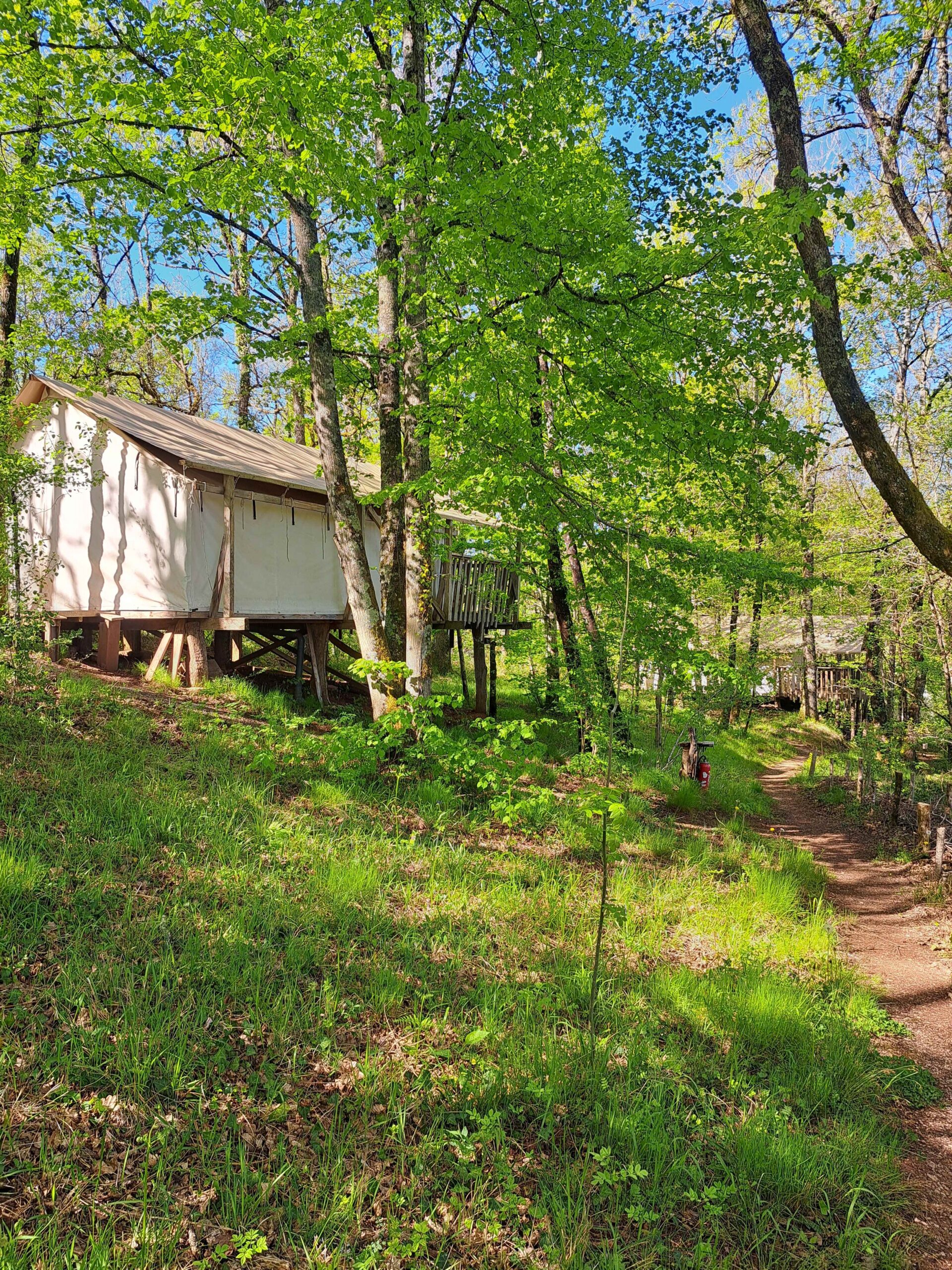 Avec coin cuisine, salle d’eau, toilettes, et joliment meublées, elles offrent à la fois un confort douillet et un contact direct avec la nature. Le grand espace privé autour de la tente lui garde toute son intimité et les soirées se prolongent délicieusement à la lueur des bougies. Coin cuisine avec plaques de cuisson, petit frigo et machine à café à filtre.